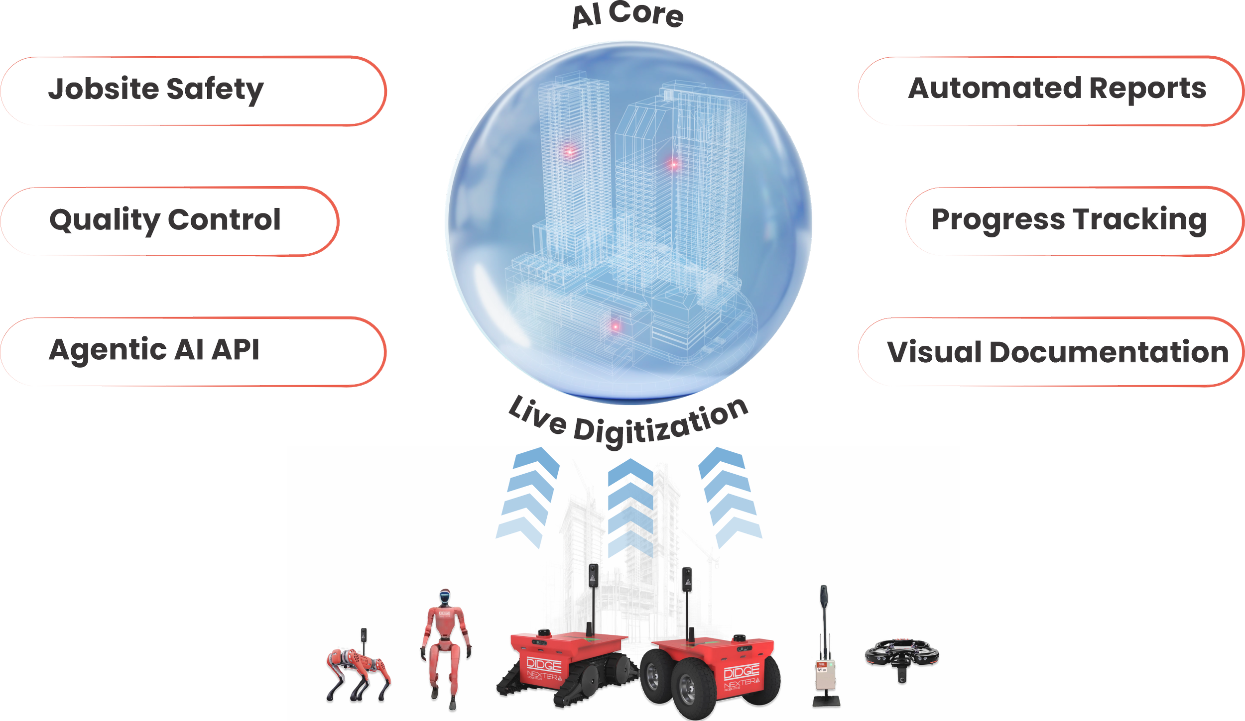 Disciplined data collection for best AI and human insights. Precisely capture your entire jobsite area every day with Autonomous Robots zero human effort self-driving robots unprecedented quality Didge Robots